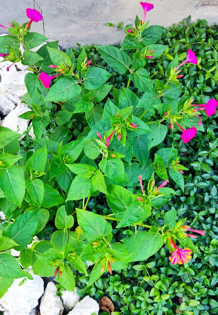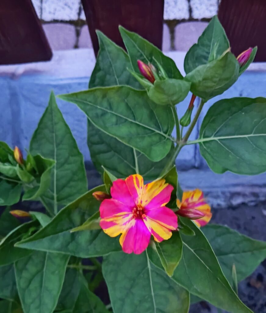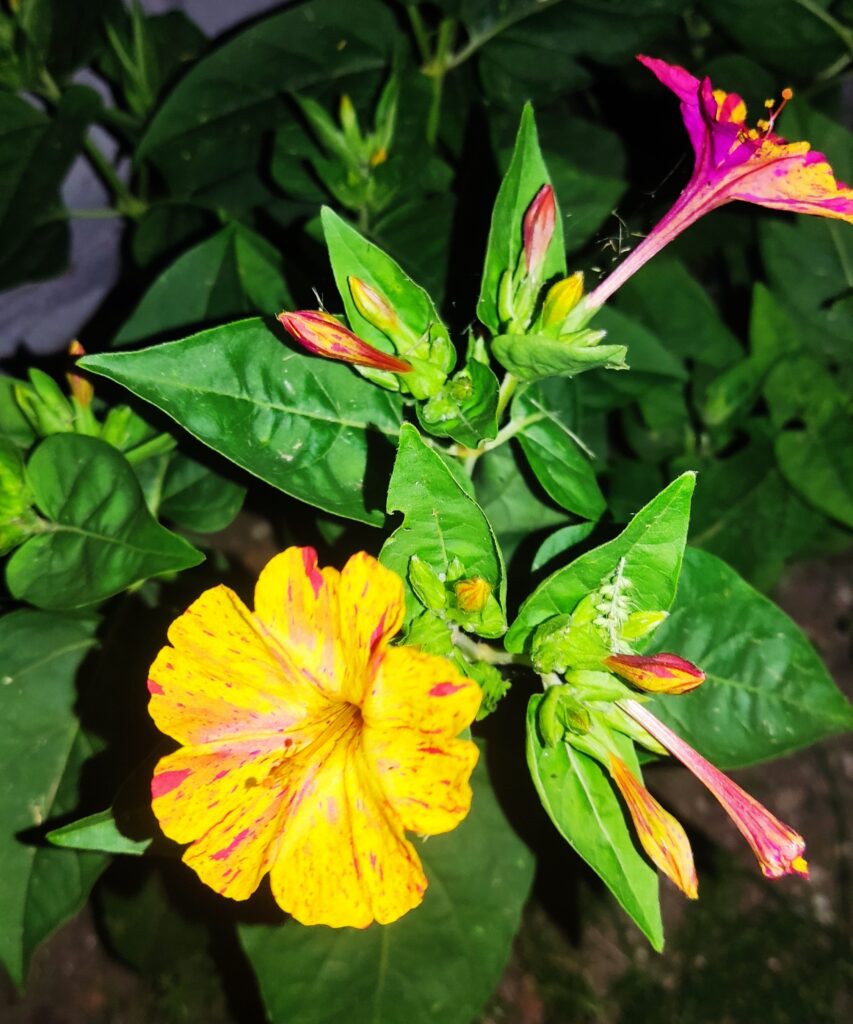 Dziwaczek wielobarwny (Mirabilis jalapa)– dziwna roślina, która otwiera swe kwiaty tylko nocą, przy czym na jednej roślinie mogą znajdować się kwiaty o różnej barwie. Łacińska nazwa Mirabilis właśnie oznacza “dziwny”. No tak. Raczej spotykamy jedno barwne rośliny, dziwaczek różni się nieco od nich.