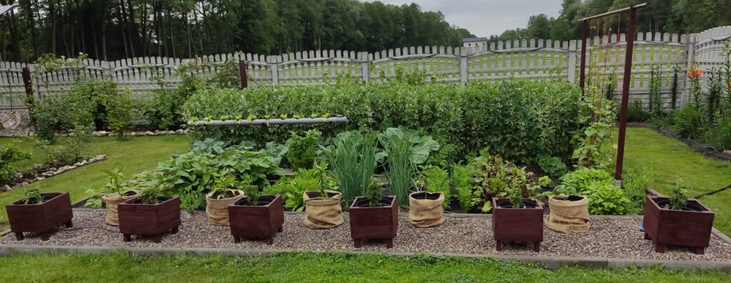 Mój warzywnik nie jest duży, ma wymiary 3 x 6 metrów, dodatkowo przylega do niego wysypane grysem poletko na warzywa i owoce. Podczas uprawy warzyw stosuję się do zasad allelopatii dodatniej, tzn. sadzę warzywa w dobrym dla siebie sąsiedztwie. W warzywniku hoduję nie tylko warzywa ale również zioła i kwiaty, które posadzone przy odpowiednich warzywach chronią je przed szkodnikami i chorobami.