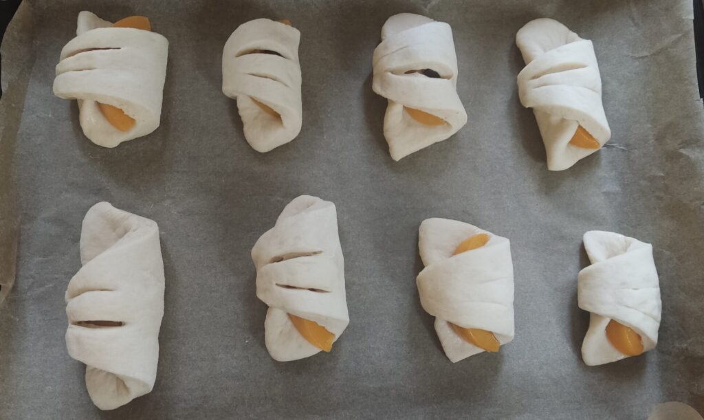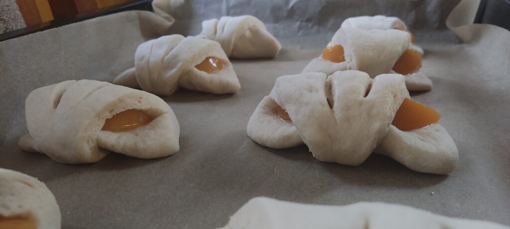 - Gotowe rogaliki odkładam na blachę wcześniej wyłożoną papierem
