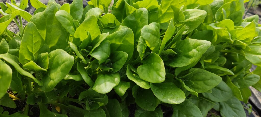 Kolejnym warzywem, które wysiewam co roku jest szpinak nowozelandzki. Najbardziej zależało mi na gatunku do bezpośredniego spożycia – na surowo. Uprawiałam już chyba wszystkie gatunki szpinaków. Wszystkie one wydawały mi się zbyt kwaśne, albo zbyt twarde, na niektóre musiałam dłużej czekać aby je zerwać. Znalazłam nasiona szpinaku nowozelandzkiego, wysiałam i teraz już tylko jego chcę mieć w warzywniaku. Do sałatek jest idealny, ma delikatny i lekko kwaśny smak. Można go również gotować lub podsmażać. Jego uprawę stosuję podobnie do uprawy rukoli i tak jak rukola, szpinak nowozelandzki gości na moim talerzu aż do jesieni.