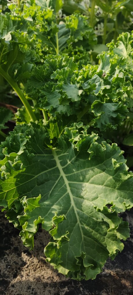 Warzywem, którego nie może zabraknąć u mnie na grządce jest jarmuż. Zrywany jest od czerwca do późnej zimy. Nawet gdy za oknem śnieg i wszystkie warzywa już są zerwane, jarmuż dalej zdobi moją grządkę. To coś niezwykłego zimą zbierać świeże liście tego warzywa. Jarmuż bez problemów można zbierać do temperatury -5 stopni, a nawet -8. Poniżej przemarza. Można go spożywać na surowo, chociaż bardziej przepadam za jego podsmażeniem przed podaniem, wtedy to jego aromat jest jeszcze intensywniejszy.