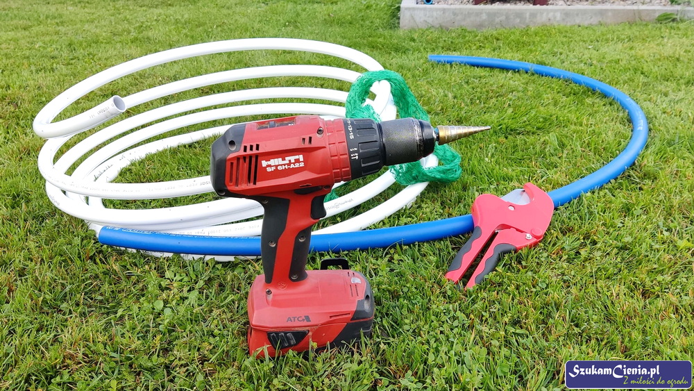 Do budowy stelażu użyłam rurki PEX o średnicy 20 mm i niebieską rurę PE o średnicy 25 mm.