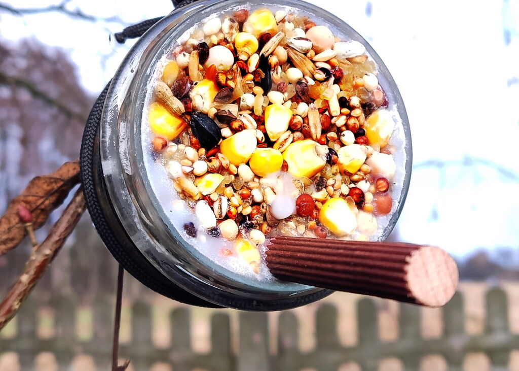 Dziękuję, że dołączyliście do mnie w tym prostym, tanim i szybkim projekcie ze słoiczkami. Przygotowanie domowego pokarmu dla ptaków nie musi być drogie ani czasochłonne. Wystarczy odrobina kreatywności i chęci, a efekty są naprawdę satysfakcjonujące! Pamiętajmy również, że słoiczki, z których ptaki już wszystko wyjadły możemy wykorzystać powtórnie.