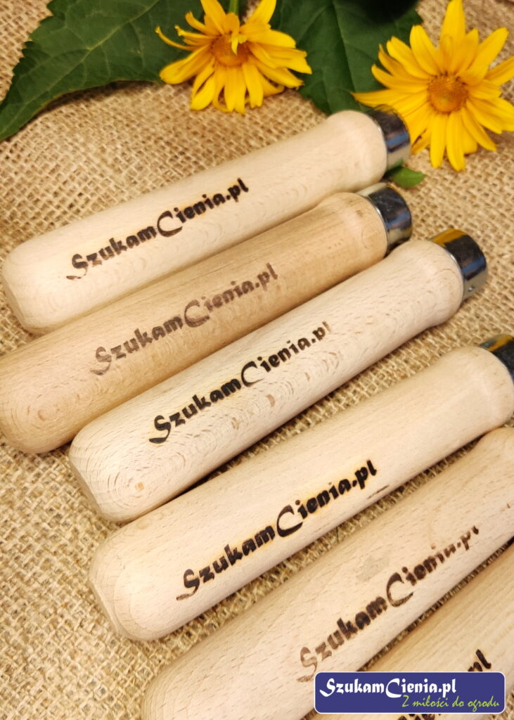 Do mojego projektu wybrałam grube drewniane rączki, ponieważ są wygodniejsze. Wypaliłam na nich moje logo, a następnie zabezpieczyłam je olejem.