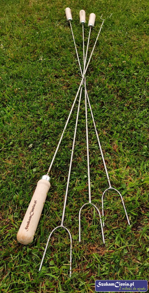 Moje widelce są nieco dłuższe od standardowych, mają 120 cm długości oraz wygodną, grubą rączkę. Całość wykonana jest ze stali nierdzewnej, co sprawia, że są łatwe w czyszczeniu i wyjątkowo wytrzymałe. Przy ich produkcji skupiłam się na funkcjonalności i komforcie użytkowania, co mam nadzieję, że przełożyło się na ich praktyczność w codziennym użyciu.